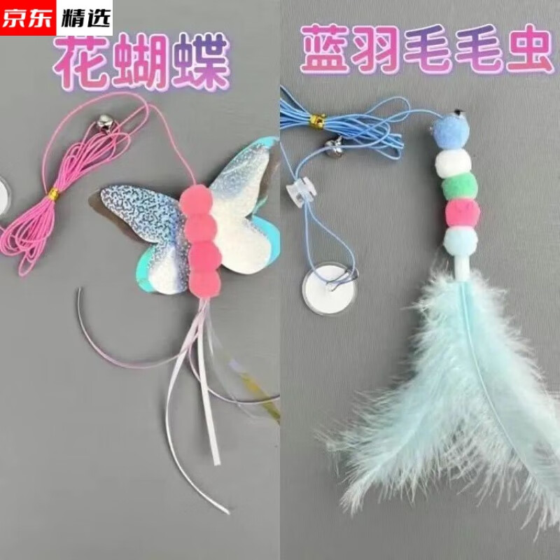 新型秋千逗猫玩具 悬挂式逗猫玩具小猫荡秋千逗猫棒挂门式猫咪自嗨解闷神器铃铛羽毛 【以下商品收藏关注优先发货】花 蝴蝶 蓝羽毛毛虫
