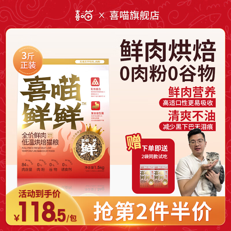 喜喵低温烘焙猫粮全价无谷成猫幼猫全阶段高蛋白营养鲜肉猫主粮 鸡兔配方 1.5kg