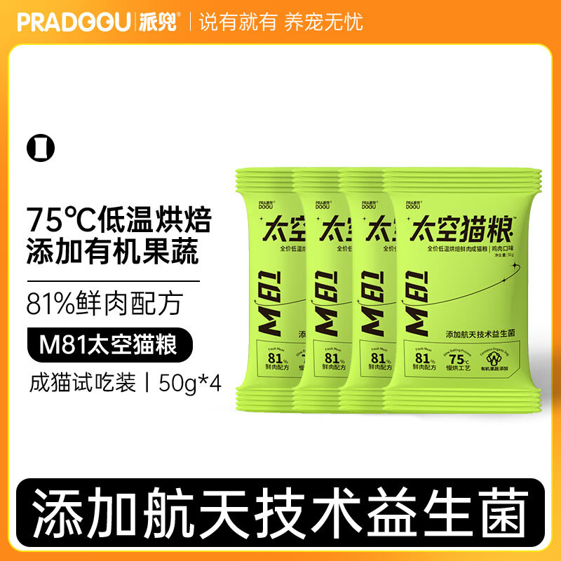 派兜(PRADOOU)低温烘焙猫粮成猫专用太空猫粮添加益生菌天然无谷猫主粮50g*4