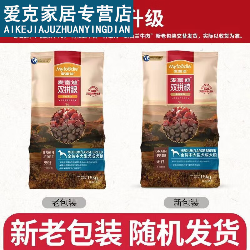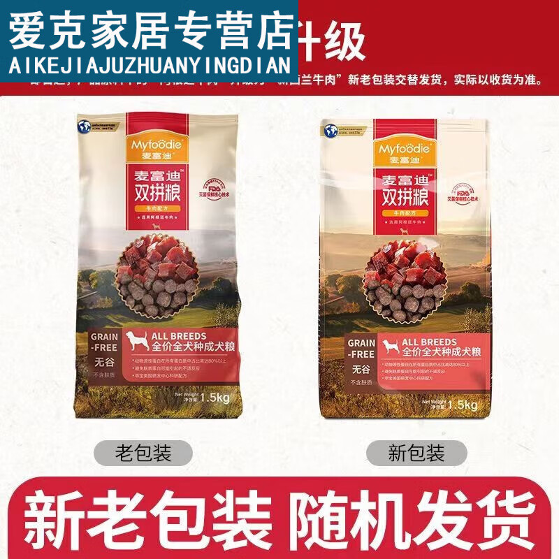 麦富迪(Myfoodie)麦富迪狗粮10kg牛肉双拼无谷狗粮金毛拉布拉多通用低敏犬粮20斤 无谷牛肉双拼小型犬成犬粮1.5kg