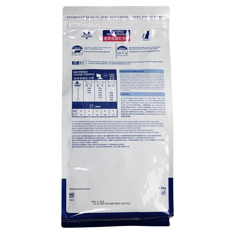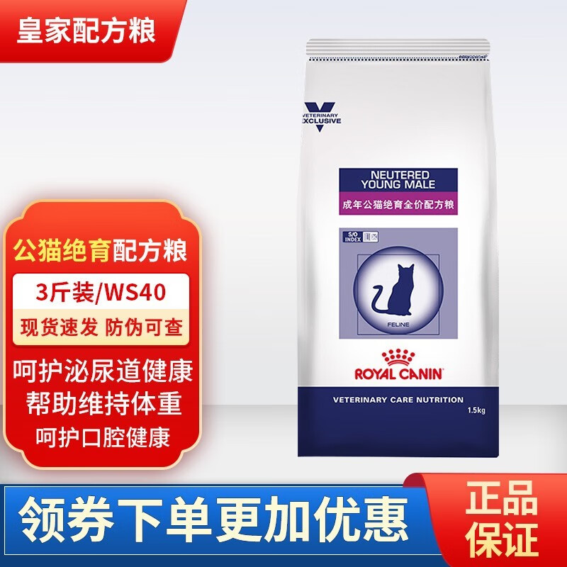 皇家猫粮 SW37成年母猫公猫绝育全价配方粮WS40公猫阉割处方粮低脂稀释尿液减少结石猫咪通用型猫粮 WS40绝育公猫配方粮1.5kg