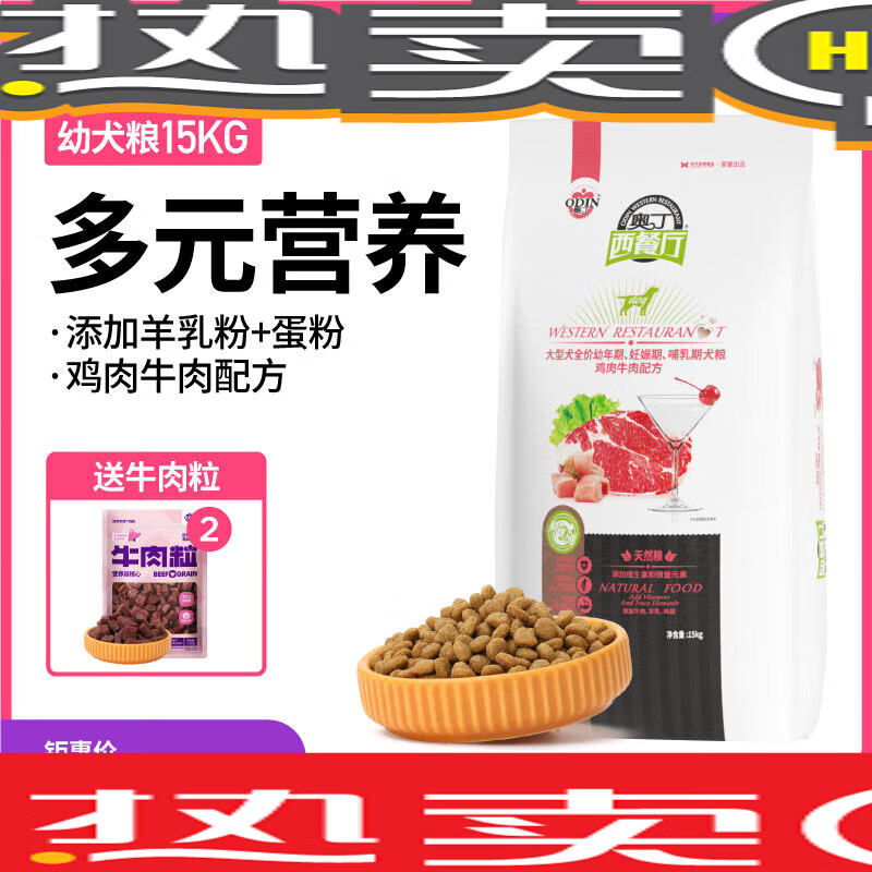 奥丁西餐厅狗粮15k.g幼犬专用金毛萨摩耶阿拉斯加主粮30斤 牛肉味 15k.g