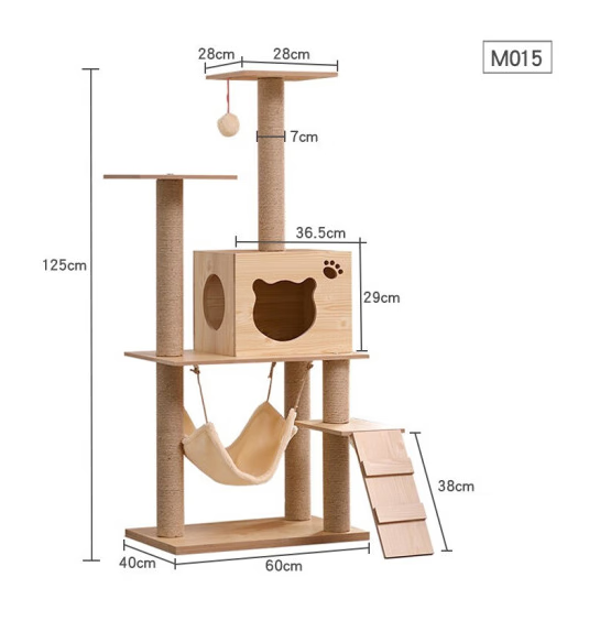 猫爬架 豪华实木猫爬架大型太空舱木质剑麻猫架猫窝猫树一体耐磨 M015款-此款看图二或详情
