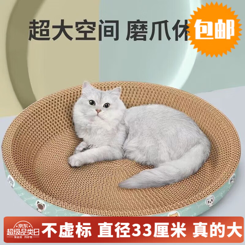 猫抓板窝特大号猫玩具猫爪板猫抓盆不掉屑猫窝碗形圆形瓦楞纸耐磨宠物磨爪器 【大号】直径33厘米