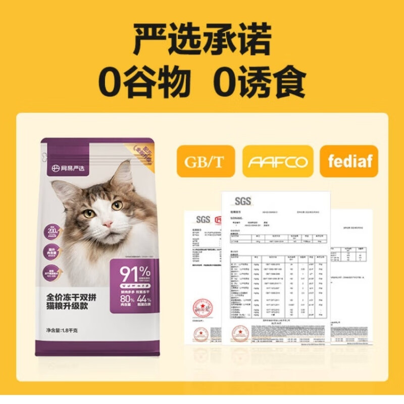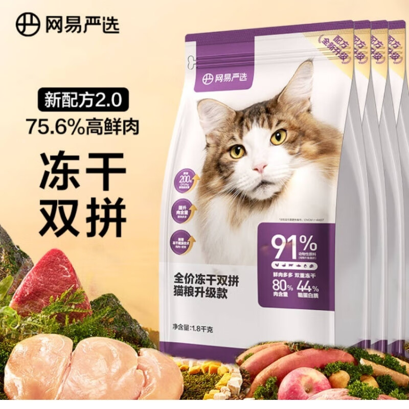 网易严选全价冻干双拼猫粮宠物主粮幼猫成猫全价天然无谷粮猫咪食品7.2kg
