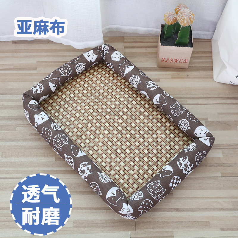 出极夏季凉垫小猫窝藤编凉席小狗垫子泰迪鹿犬床垫猫咪降温大狗凉席垫 咖 玩具 M中型(53*43)适10斤内犬猫