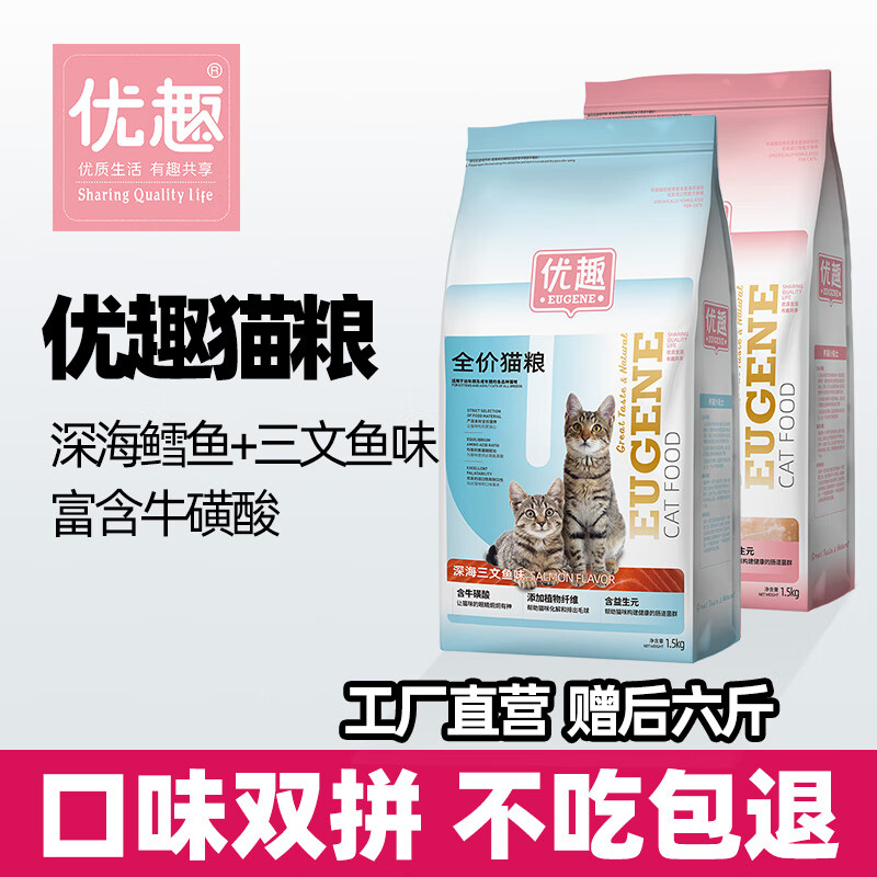 优趣成猫粮幼猫粮通用天然粮营养猫奶糕口味双拼增肥营养全面健康 鳕鱼味1.5kg 三文鱼1.5kg