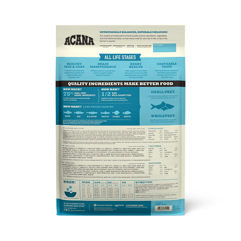 爱肯拿(ACANA)猫粮无谷农场盛宴鸡肉鱼幼猫成全价全期猫粮 鱼肉美毛原装进口 海洋盛宴猫5.4kg效期23年12月起