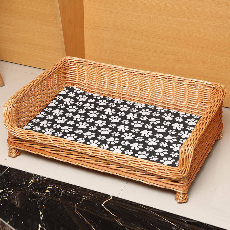 柳编木制狗窝四季通用可拆洗猫窝泰迪大小号防水宠物窝沙发带凉席