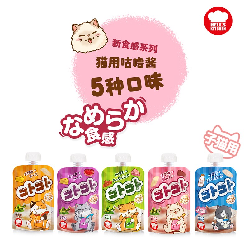地狱厨房(Hell's Kitchen)咕噜酱新食感系列 成猫 猫零食 幼猫猫条 肉酱肉泥 【囤货装】 混合口味【5款口味】*20袋