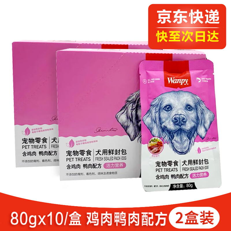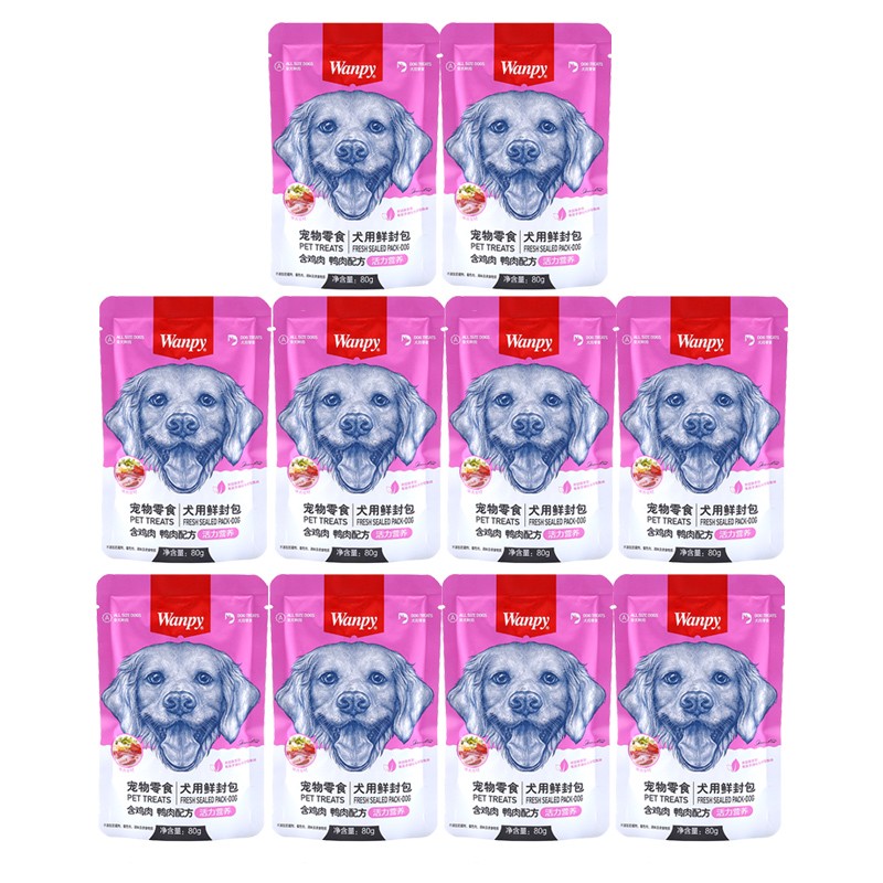 顽皮(Wanpy)狗鲜封包宠物狗湿粮狗罐头泰迪金毛通用80g*10袋 整盒装 鸡肉 鸭肉80g*10袋(2盒装)