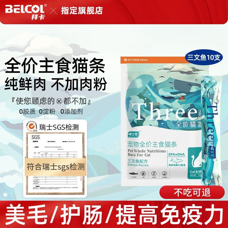 喵三餐主食猫条猫零食鱼油猫条防掉毛幼猫咪猫鱼肉成猫孕猫罐头 三文鱼肉主食猫条10支/包