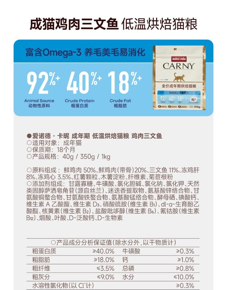 【临期特惠】爱诺德 全价低温烘焙猫粮350g/1kg