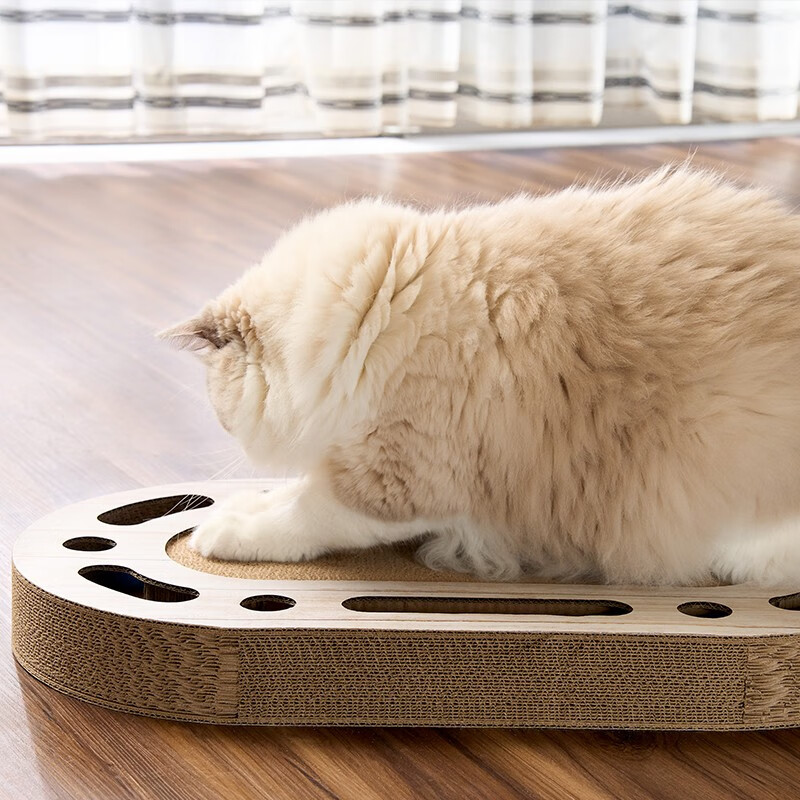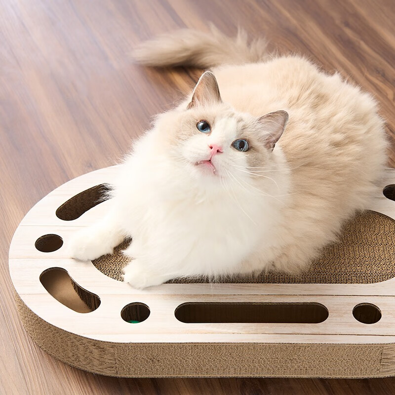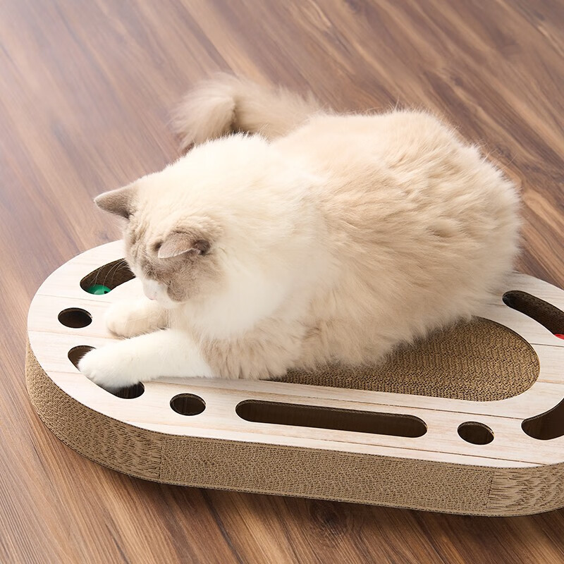 猫咪世界Necosekai椭圆猫抓板自嗨玩具GARIGARI掏球游戏带球含猫草铃铛锻炼猫咪五感 复古黄