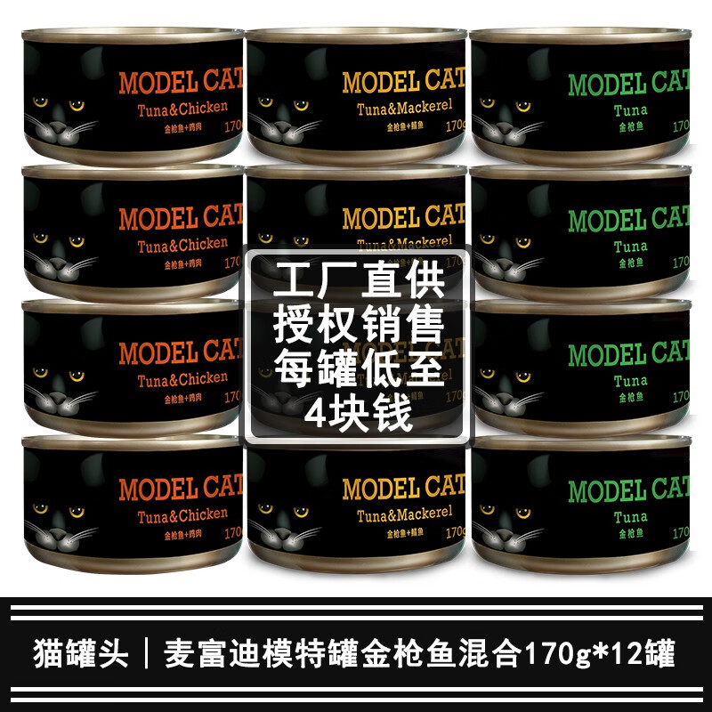 麦富迪(Myfoodie)猫罐头 模特罐金枪鱼红肉湿粮罐头 成幼猫通用 混合口味170g*12罐