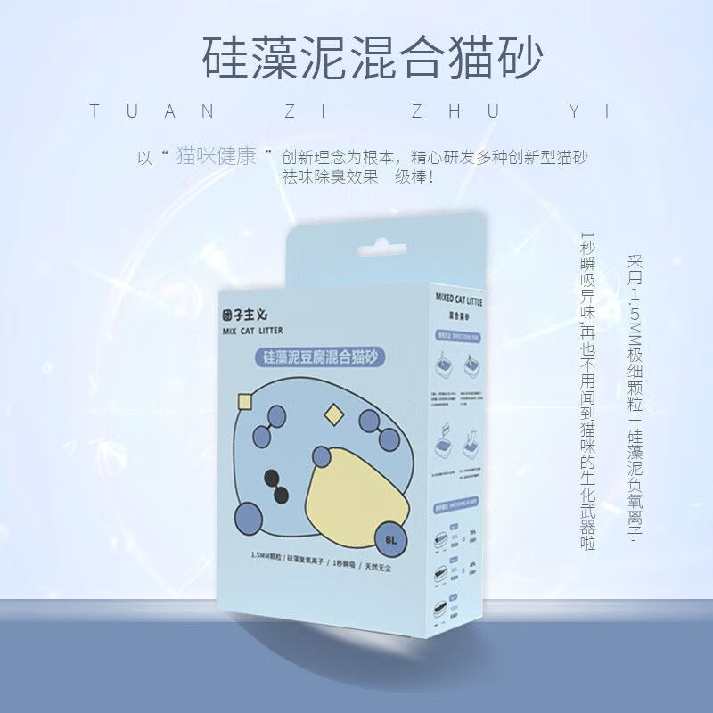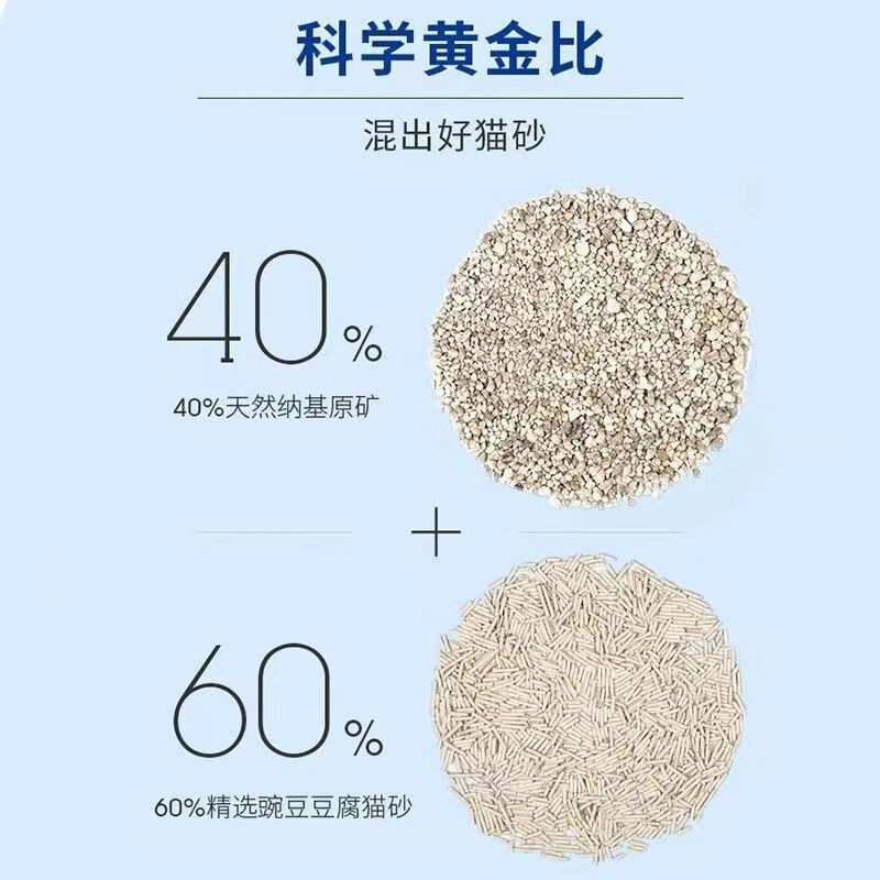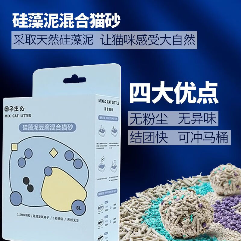 蓝氏猫砂豆腐混合砂钠基矿膨润土混合猫砂1.5mm细砂无尘 团子主义硅藻泥混合砂6L(高端R
