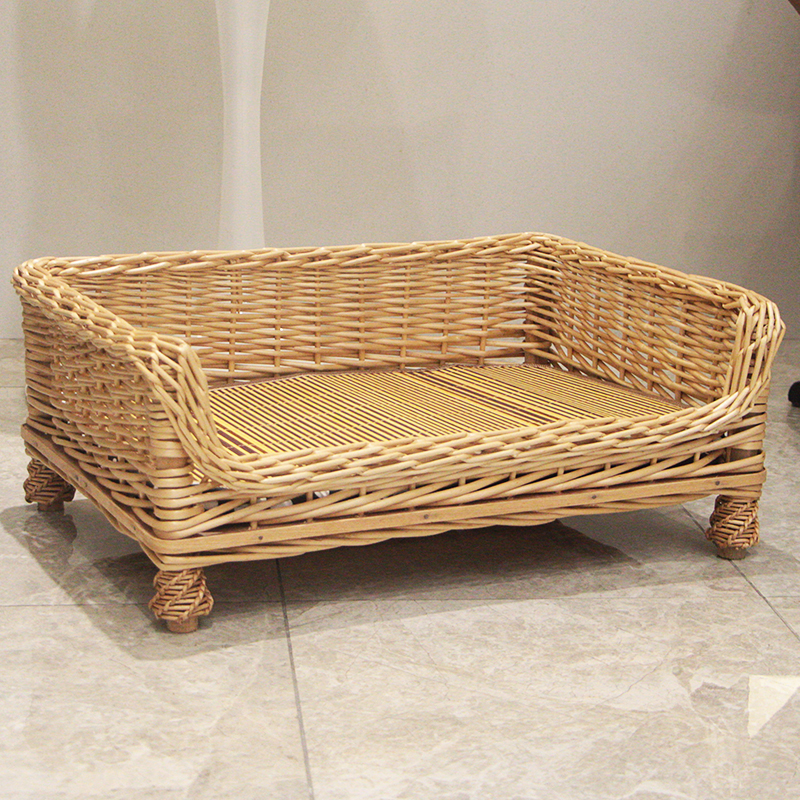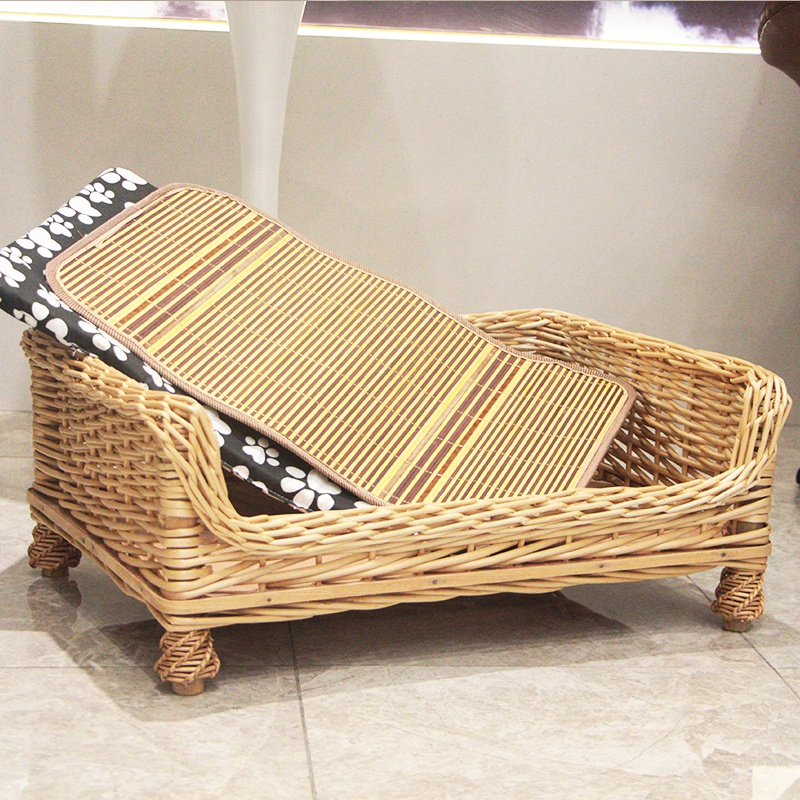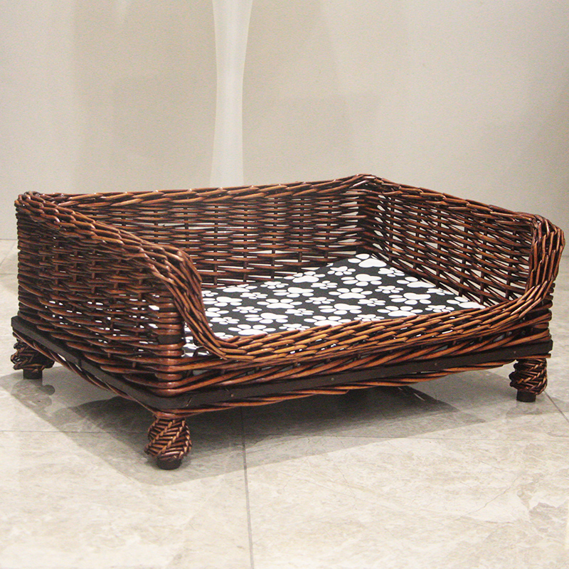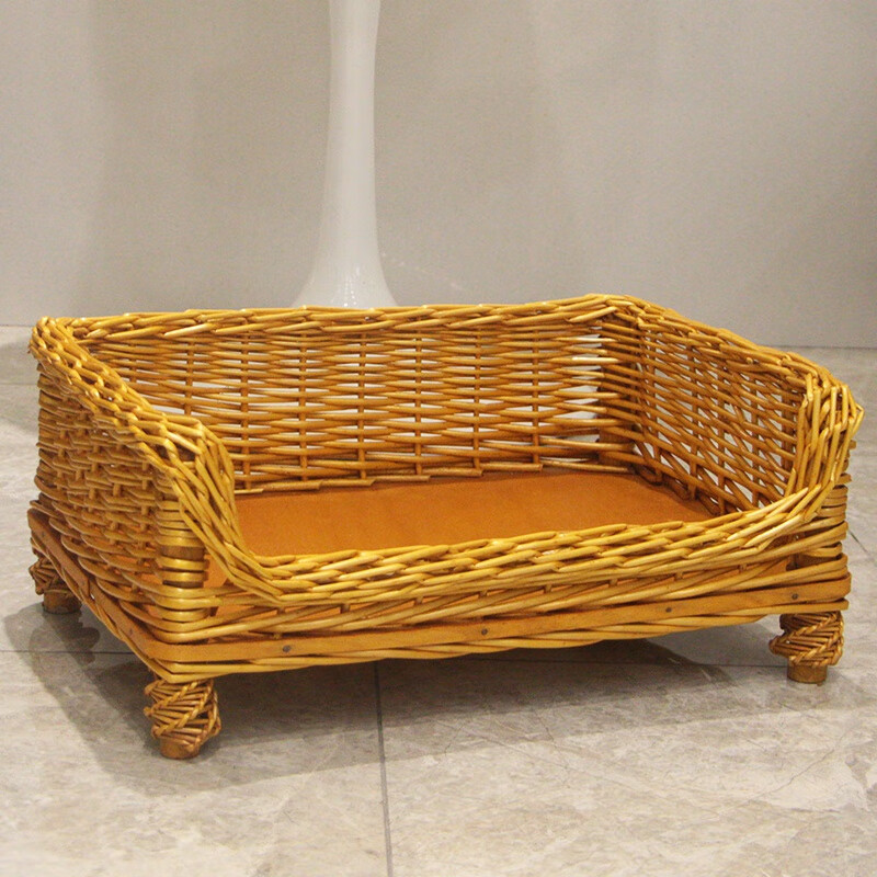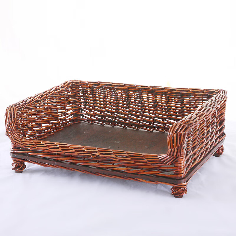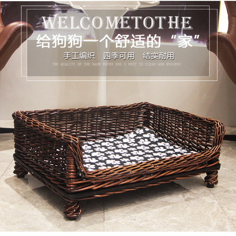 柳编狗窝狗床藤编宠物窝泰迪金毛大型犬窝可拆洗春夏秋冬四季通用 经典红棕色 软垫 1号口长95x宽60大住70斤以内