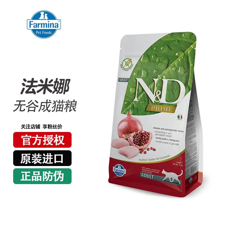 法米娜猫粮成猫粮石榴鸡肉法明娜猪肉苹果鲱鱼甜橙 精华无谷系列【鸡肉石榴】成猫粮1.5kg
