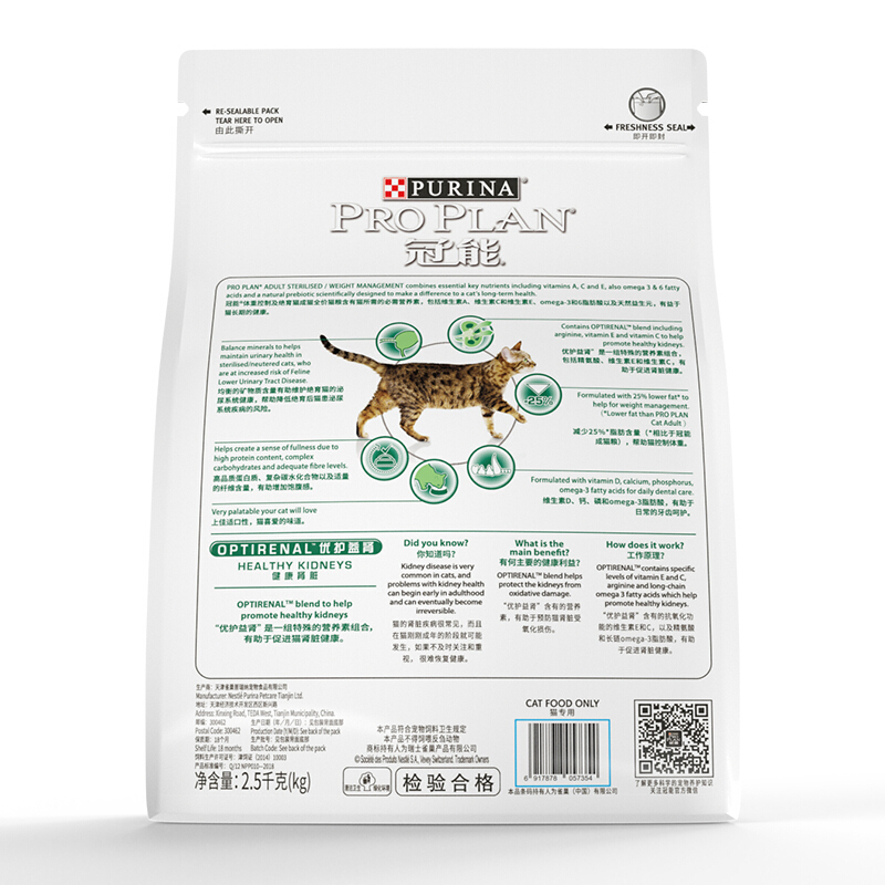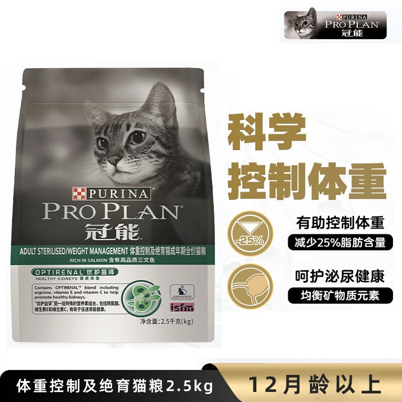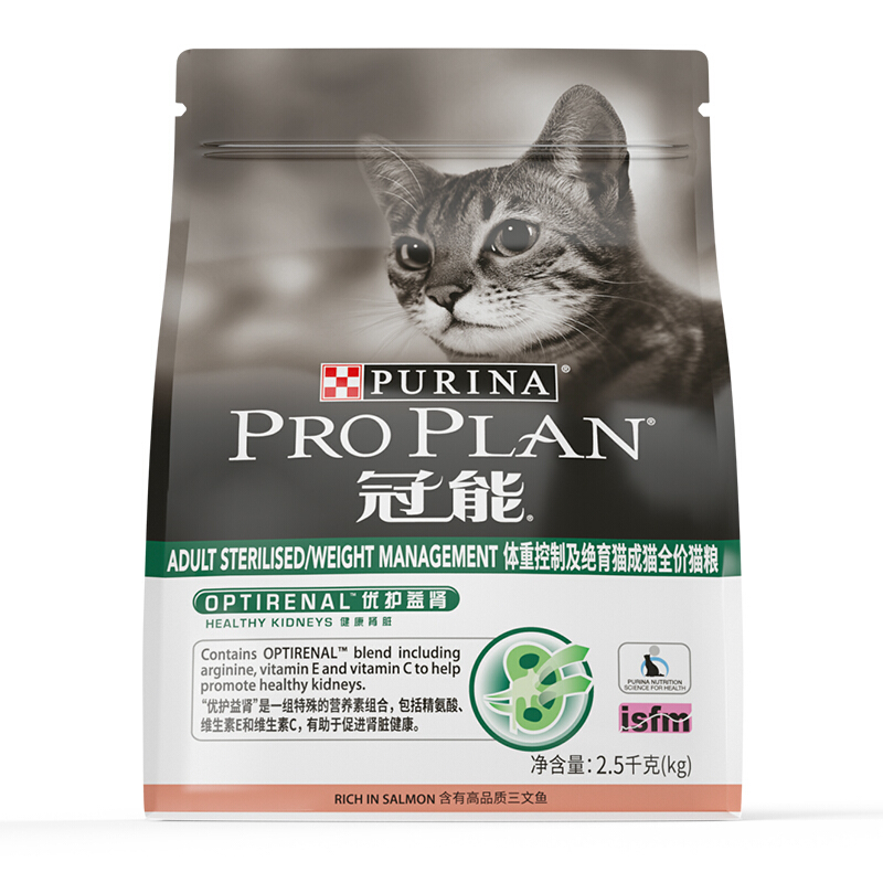 冠能(PRO PLAN)全价猫粮 鸡肉鱼肉成年期猫主粮 宠物猫咪营养食品优护益肾 体重控制及绝育猫粮2.5kg
