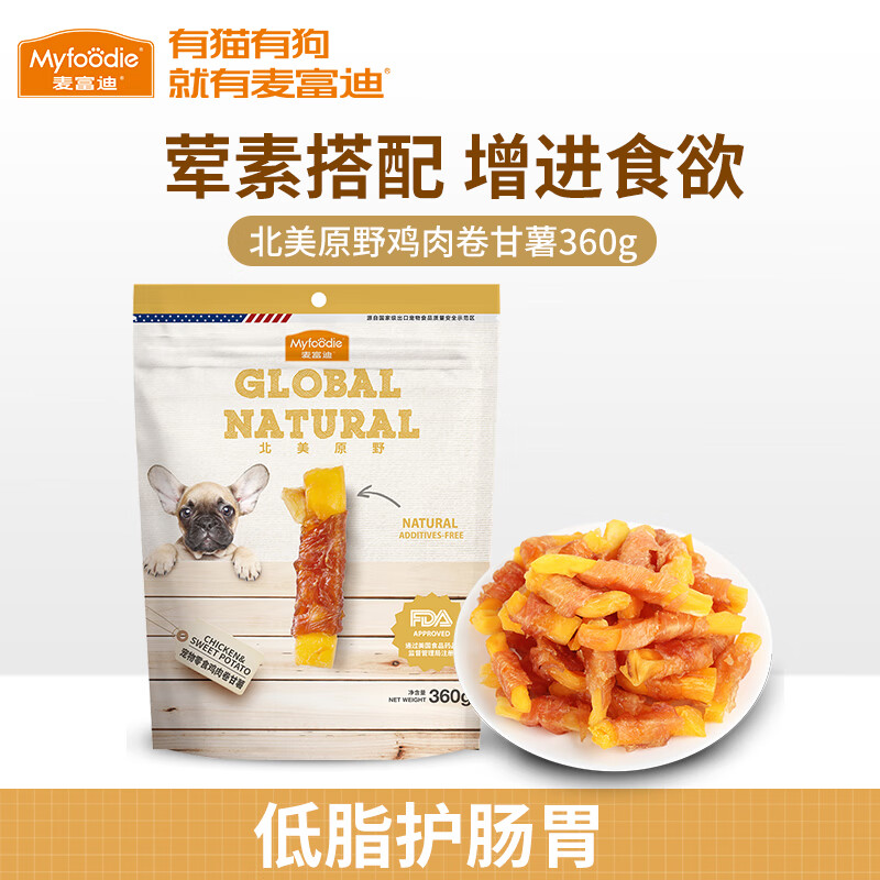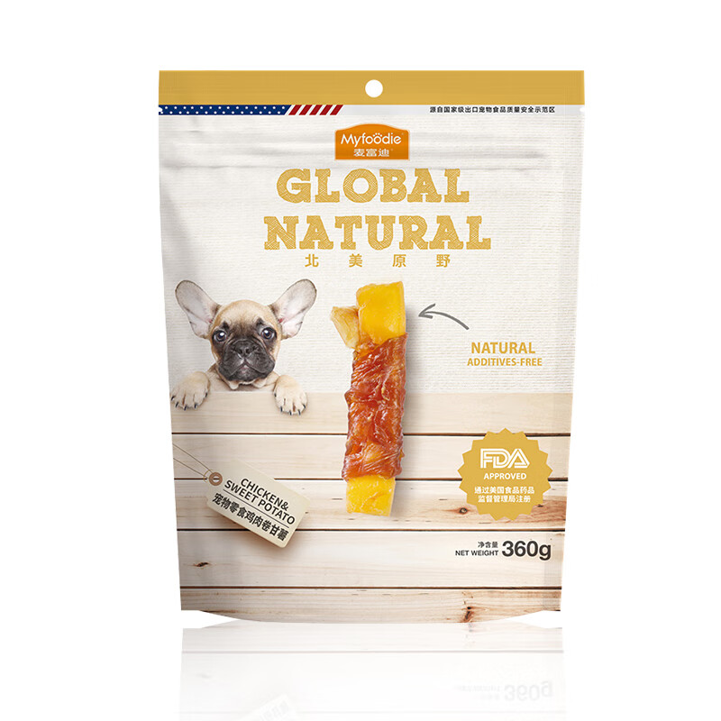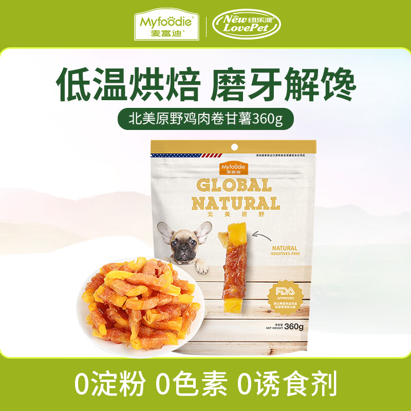麦富迪狗零食 北美原野磨牙解馋肉干泰迪柯基金毛训练奖励零食 鸡肉甘薯360g