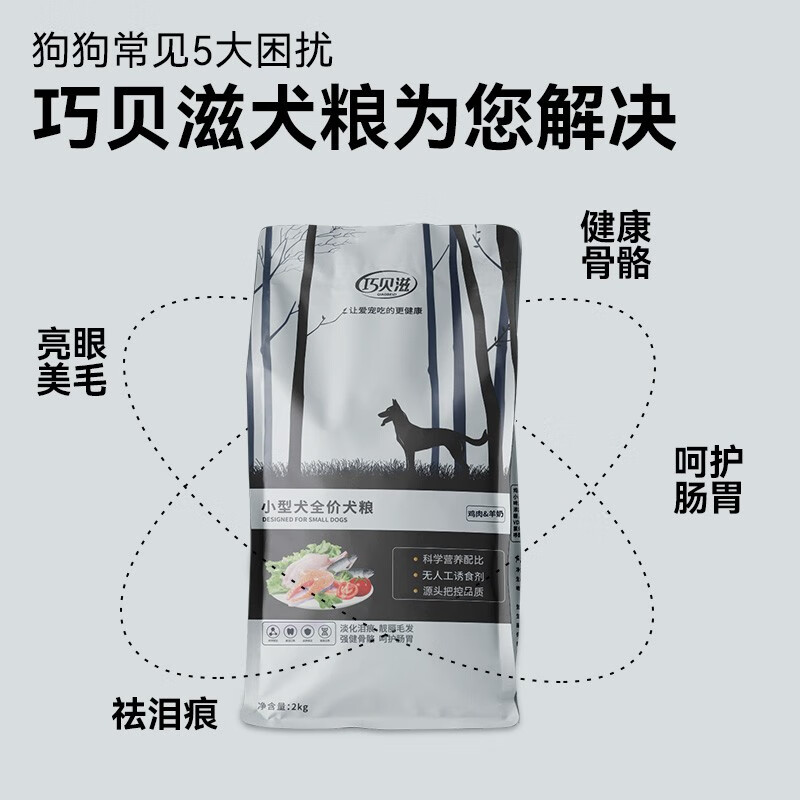 巧贝滋国产幼犬小型犬全价天然营养主粮狗粮2kg柴犬柯基泰迪比熊雪纳瑞去泪痕黑鼻头试吃绝育通用全阶段 小型犬全阶段生命全期