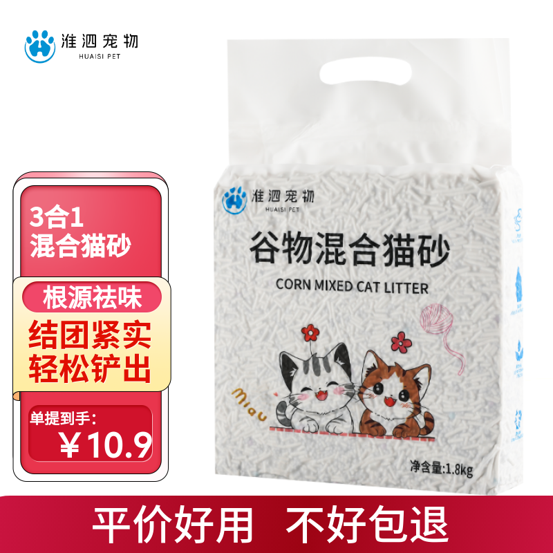 淮泗宠物 谷物混合猫砂3合1豆腐膨润土除臭因子结团紧实不粘底低粉尘 原味 3合1混合猫砂 1.8kg
