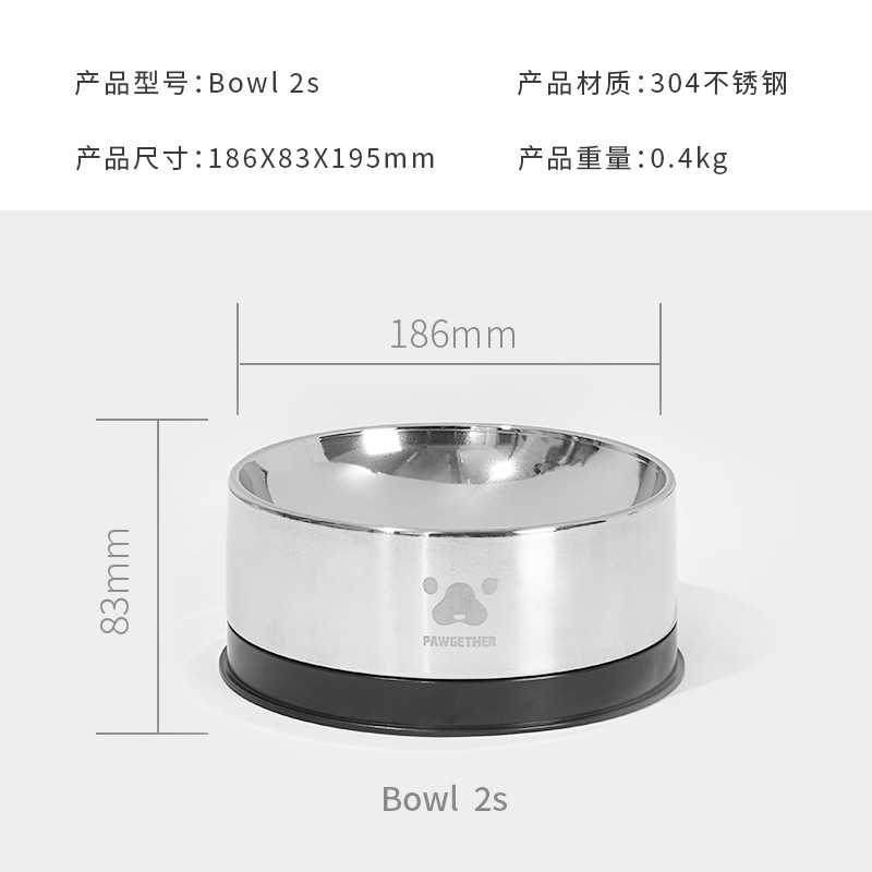 宠小到大(PAWGETHER)猫碗304不锈钢双碗防打翻大号狗碗食盆大型犬猫狗用品Bowl 2s