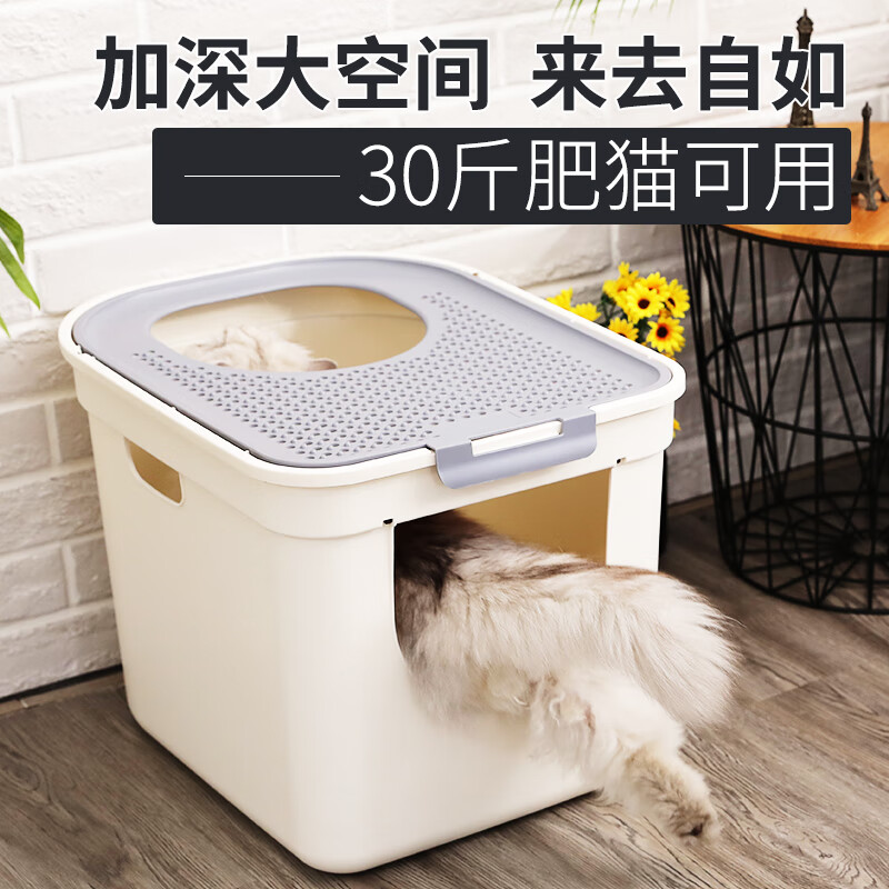 蒂乐森顶入式猫砂盆猫咪屎盆特大号半封闭式便盆除臭拉屎防外溅猫咪厕所 魔方小号(马卡龙蓝) 适合10斤内