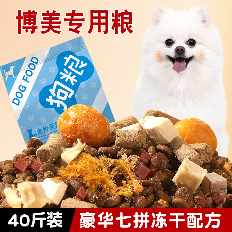 味卡鲜博美肉松冻干狗粮20kg40斤幼犬粮成犬专用粮小型犬通用补钙天然粮 【博美】豪华七拼40斤