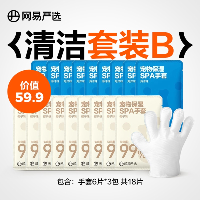 网易严选 宠物免洗手套清洁擦脚猫咪湿巾狗狗洗澡洗猫用品干洗神器 6片 猫犬通用 * 3包 共18片