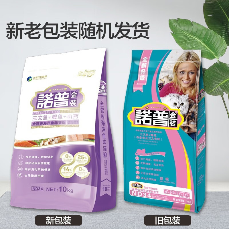 诺普猫粮 成猫幼猫10kg猫粮 天然活力繁育配方 明目去毛球 吞拿鱼及三文鱼味