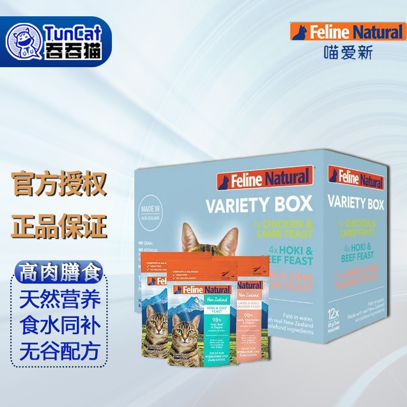 【新西兰原装进口】FelineNatural新西兰进口K9成幼猫咪主食湿粮软包猫餐包猫罐头 【混合尝鲜】*12包
