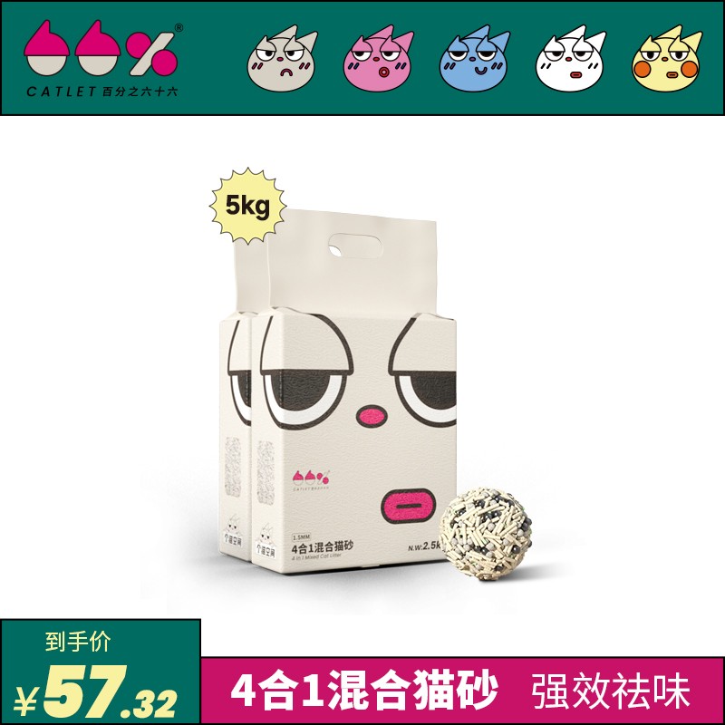 CATLET百分之六十六 膨润土豆腐猫砂 4合1混合猫砂 四重除臭无尘小颗粒高效结团吸水可冲厕所 4合1混合猫砂|2.5kg*2