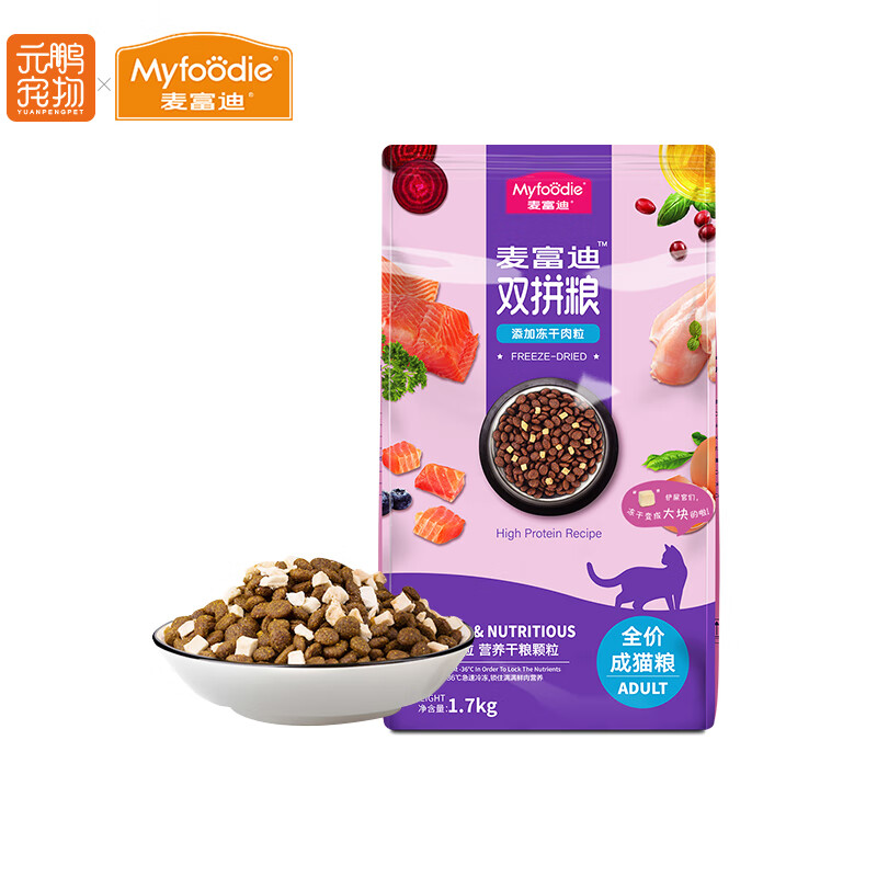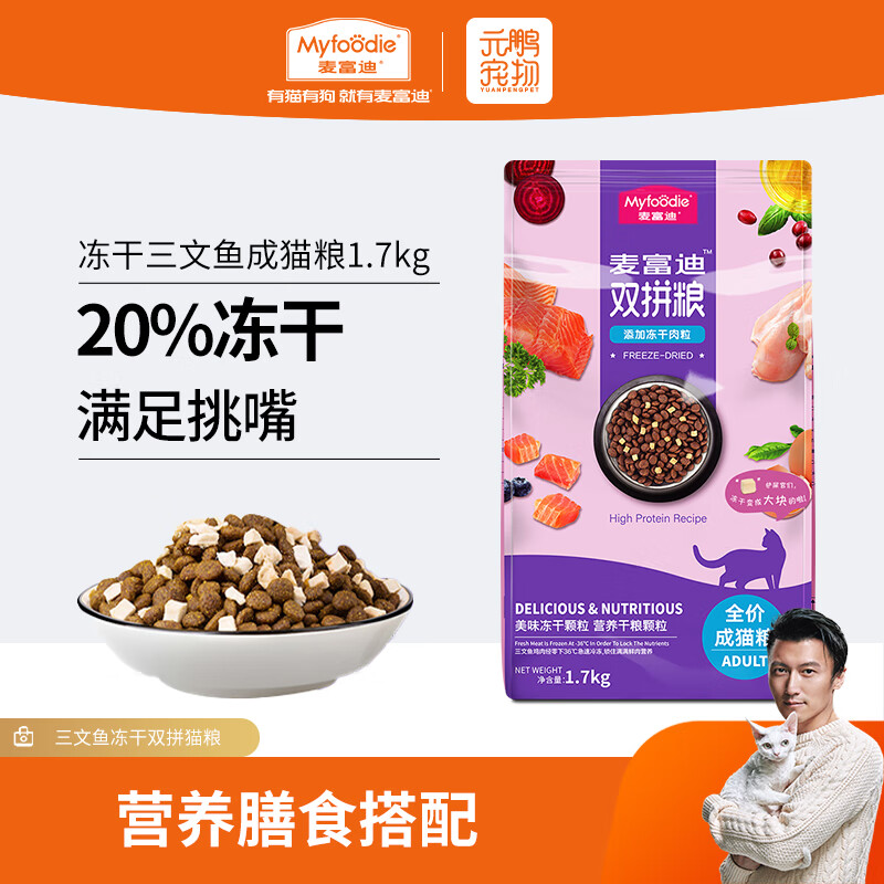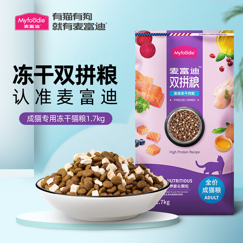 麦富迪冻干猫粮 美短英短美毛三文鱼冻干双拼粮 成猫粮1.7kg