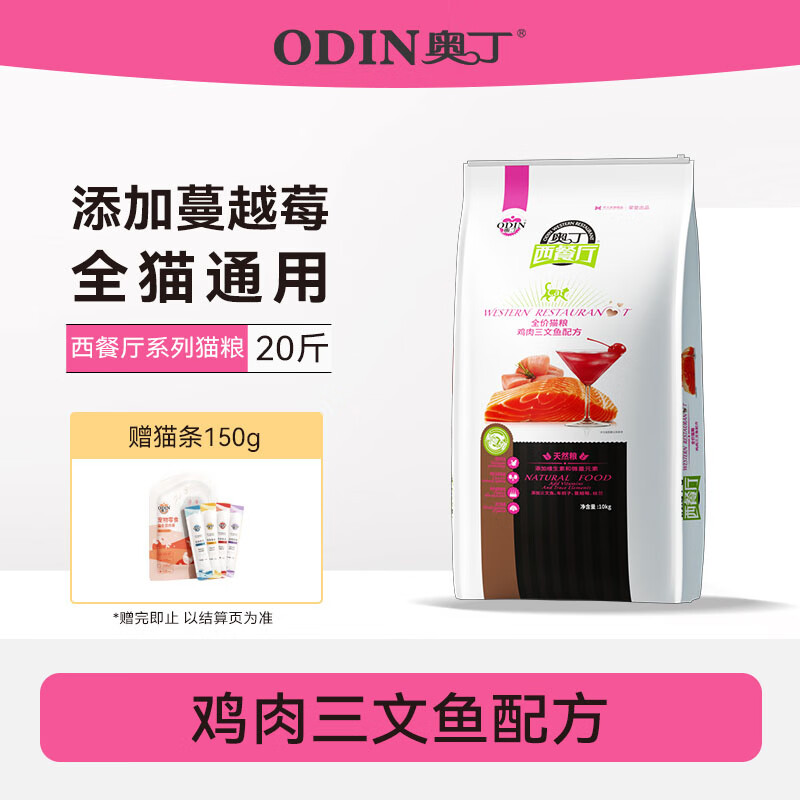 奥丁(ODIN) 西餐厅 猫粮 成猫幼猫通用型天然粮(实发20kg 含附件)