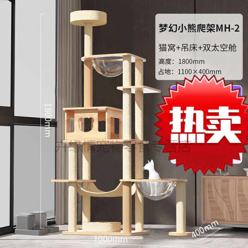 宠袋猫爬架猫窝猫树一体实木猫架子通天柱太空舱剑麻玩具猫咪用品 梦幻MH2