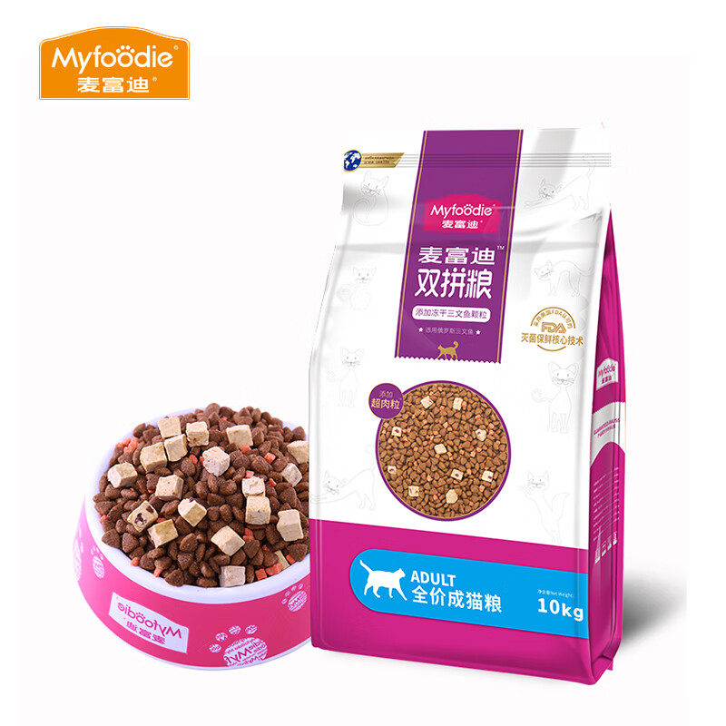 麦富迪冻干双拼猫粮 室内猫布偶英短蓝猫通用型三文鱼猫主粮 经典款|成猫粮10kg