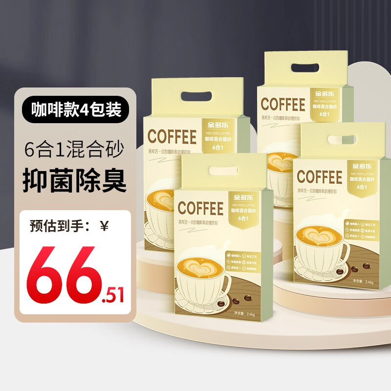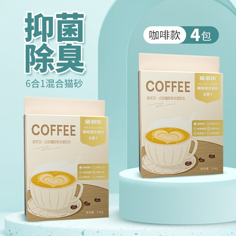 金多乐豆腐猫砂10kg公斤混合砂约20斤装除臭几近无尘猫沙结团吸水可冲厕 6合1混合猫砂咖啡款*4包