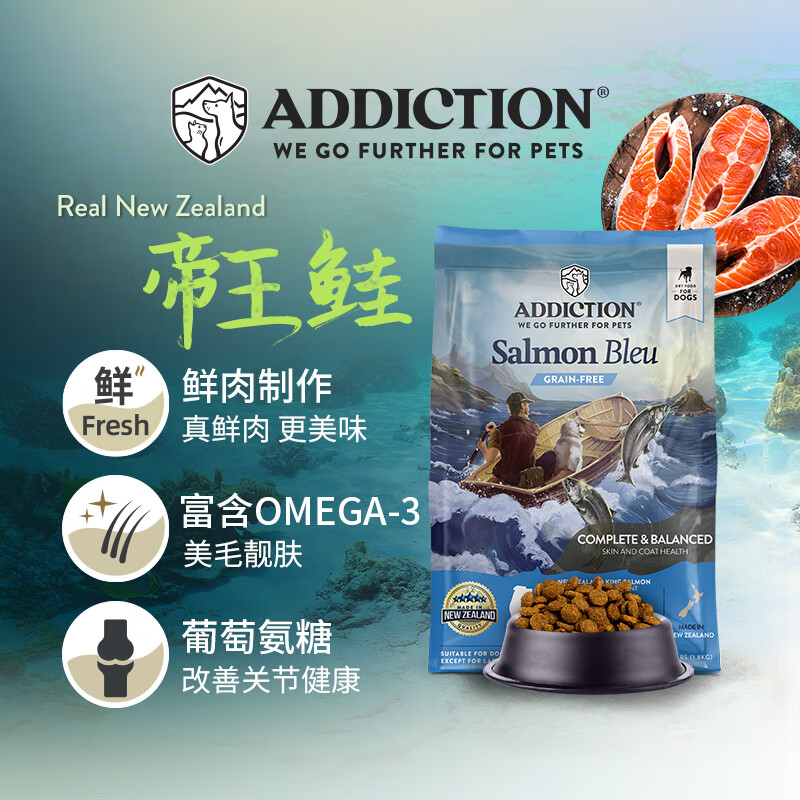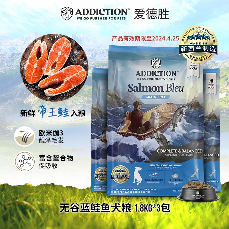爱德胜ADD新西兰进口无谷蓝鲑鱼犬粮1.8kg 进口三文鱼 蓝鲑鱼犬粮1.8kg*3 成犬粮 ADD犬粮