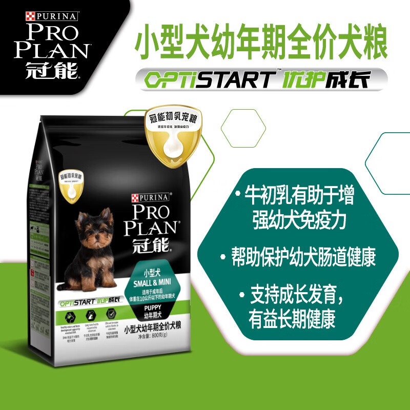 冠能(PRO PLAN)狗粮 小型犬幼犬狗粮奶糕 富含牛初乳 柯基博美泰迪比熊雪纳通用型 800g