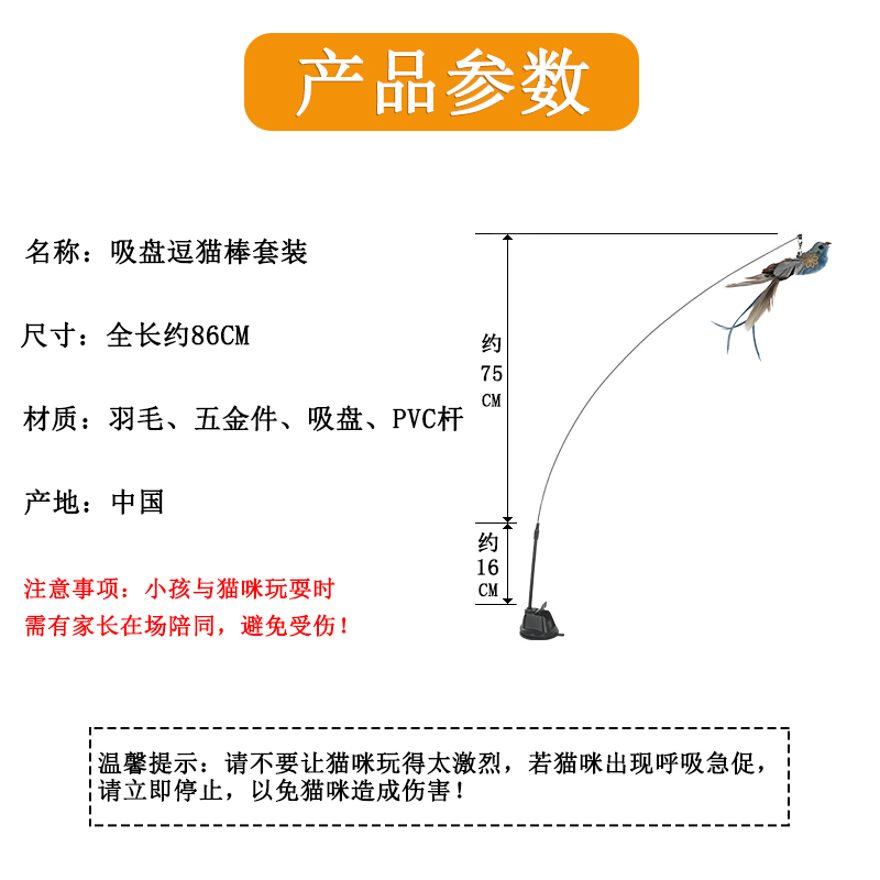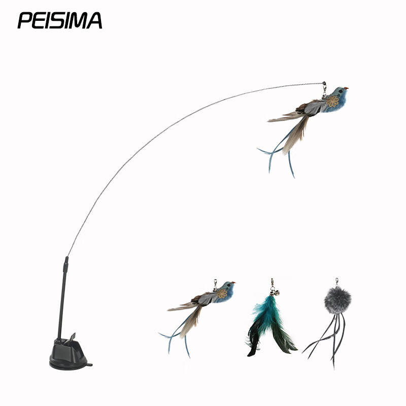 PEISIMA猫玩具吸盘逗猫棒加长钢丝可替换羽头猫咪自嗨猫玩具自动逗猫猫用品【长约86CM】