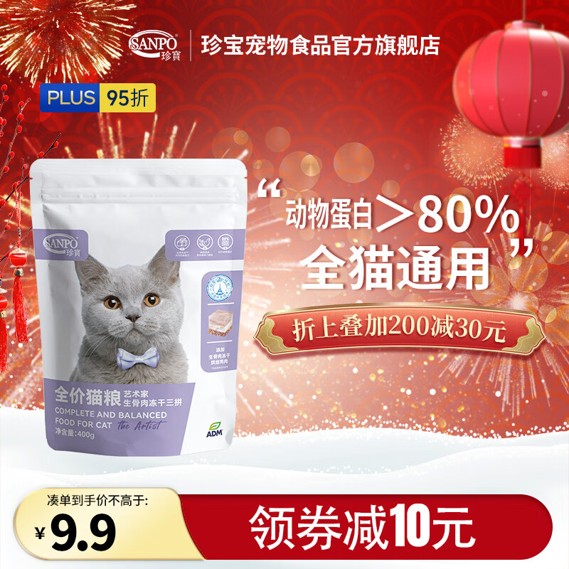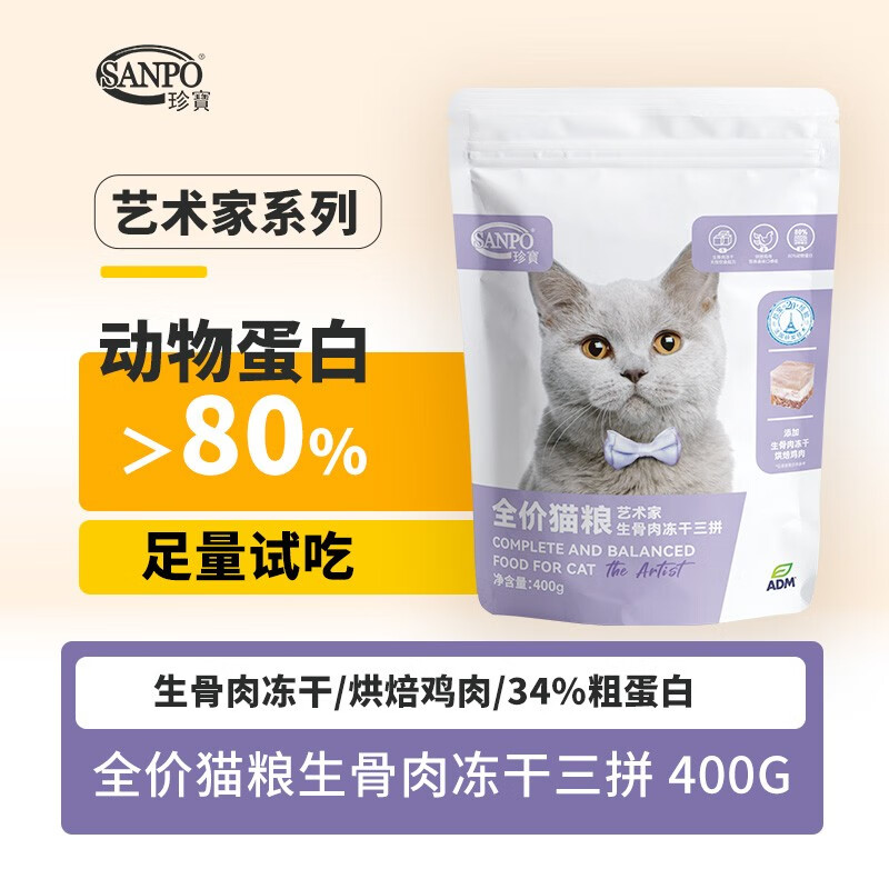 珍宝(SANPO)ADM珍宝大艺术家系列 猫粮生骨肉冻干三拼成年幼年全猫期猫粮 400g 全猫期