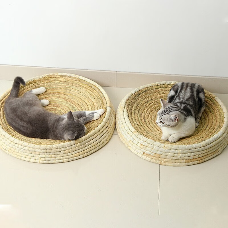 奥伊达 草编猫窝四季通用 中小型犬猫狗窝篮子 手工藤编舒适透气宠物窝耐咬耐抓猫抓板圆形直径50cm