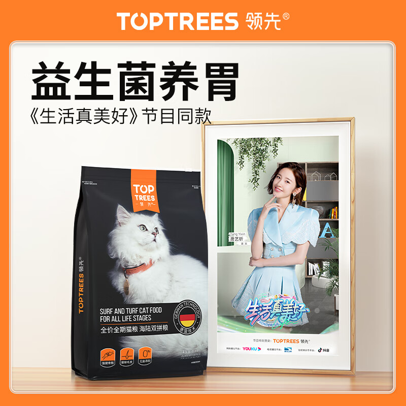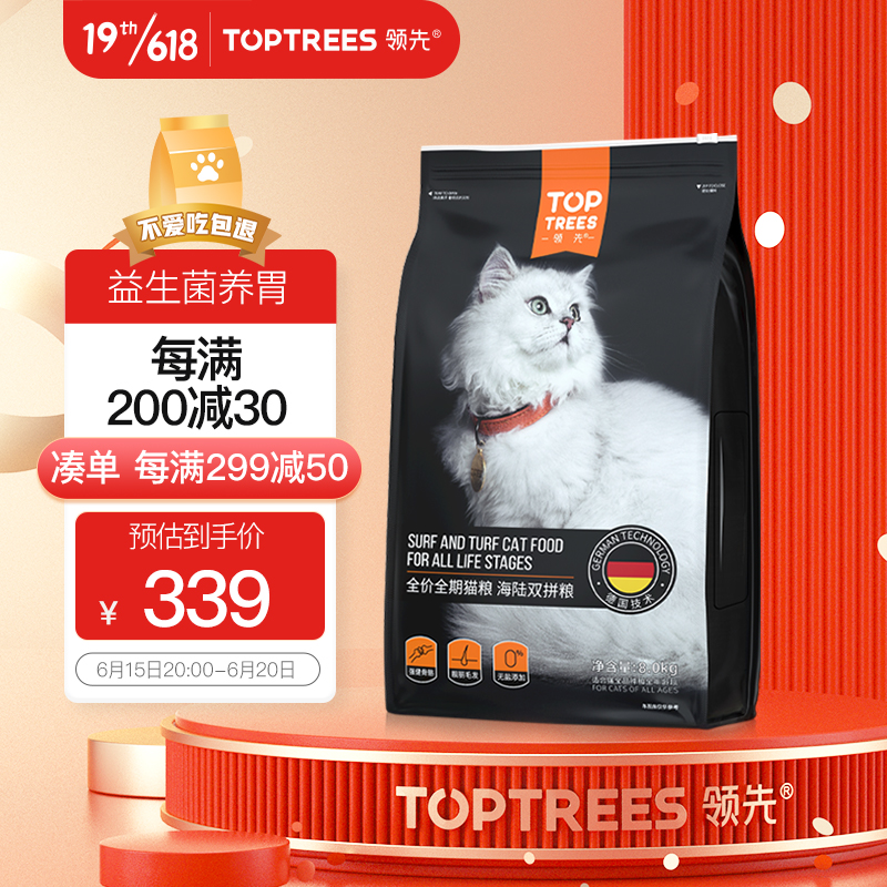 领先(Toptrees)海陆双拼养胃猫粮 成猫幼猫 天然无谷 益生菌呵护肠胃增肥发腮 深海鱼鸡肉味 8kg