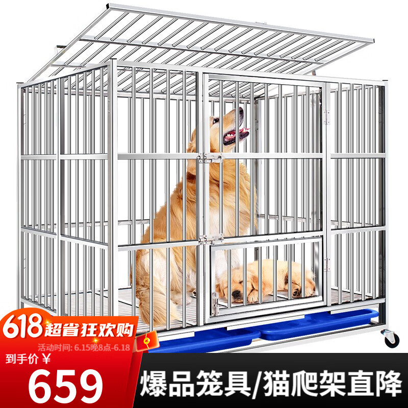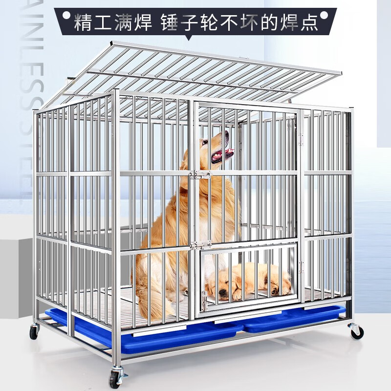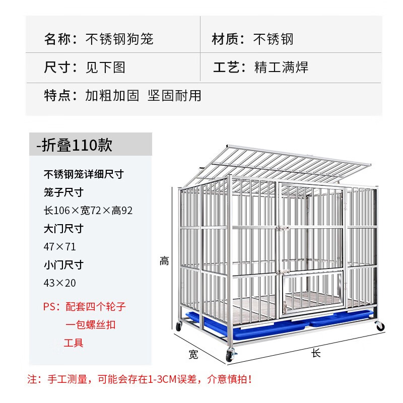 憨憨宠 【氩弧焊满焊】不锈钢狗笼中型小型犬狗笼子猫笼宠物狗狗笼子狗屋金毛拉布拉多柯基法斗用品 【折叠款-免安装】-106*72*92cm带喂食门