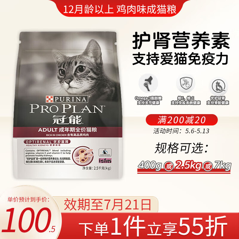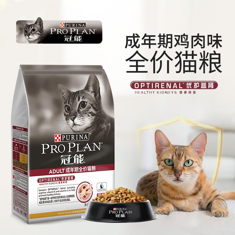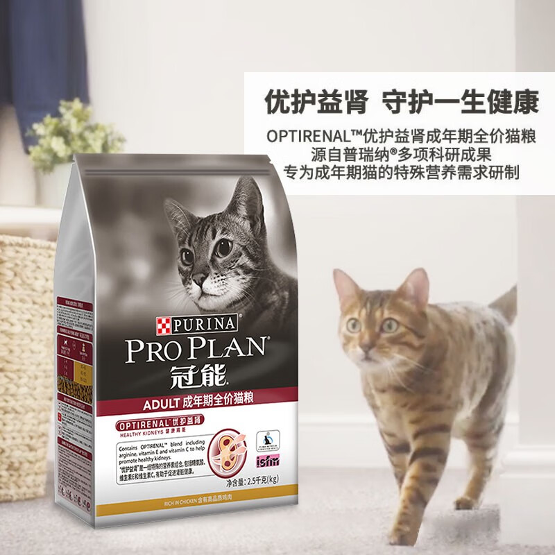 冠能(PRO PLAN)成年期猫粮 英短美短布偶猫粮1岁加 优护益肾 助力成长 成猫2.5kg/鸡肉味-有效期7.21