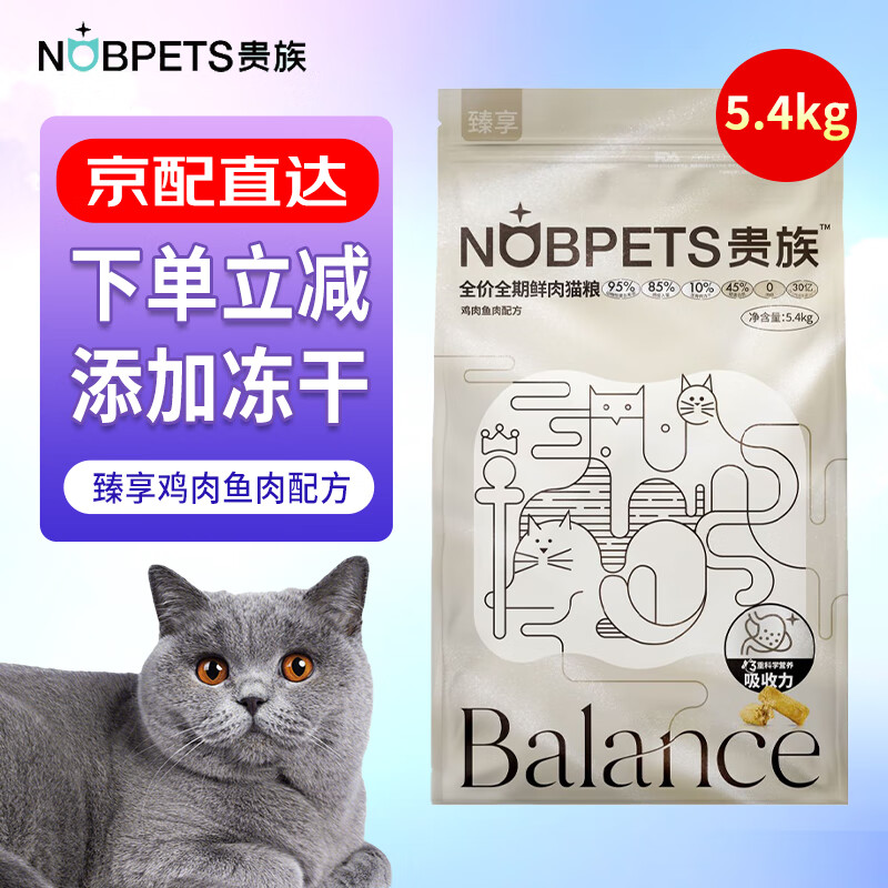 贵族益能鸡肉鱼肉冻干猫粮全价全期成猫幼猫通用猫粮 臻享鸡肉鱼肉5.4kg