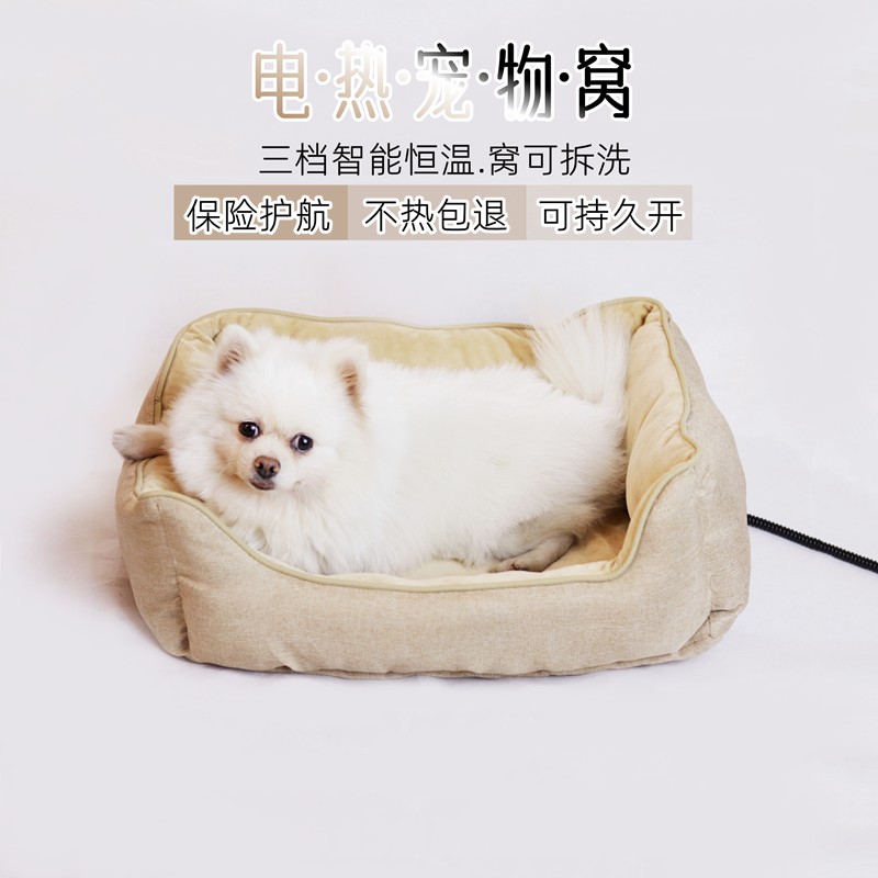 极爱宠 宠物电热窝猫窝狗窝小型犬智能恒温三档可调持续一个月不断电发热窝阻燃送保险充电式 卡其色 (大号)41*51CM 围枕窝 发热垫(套装)