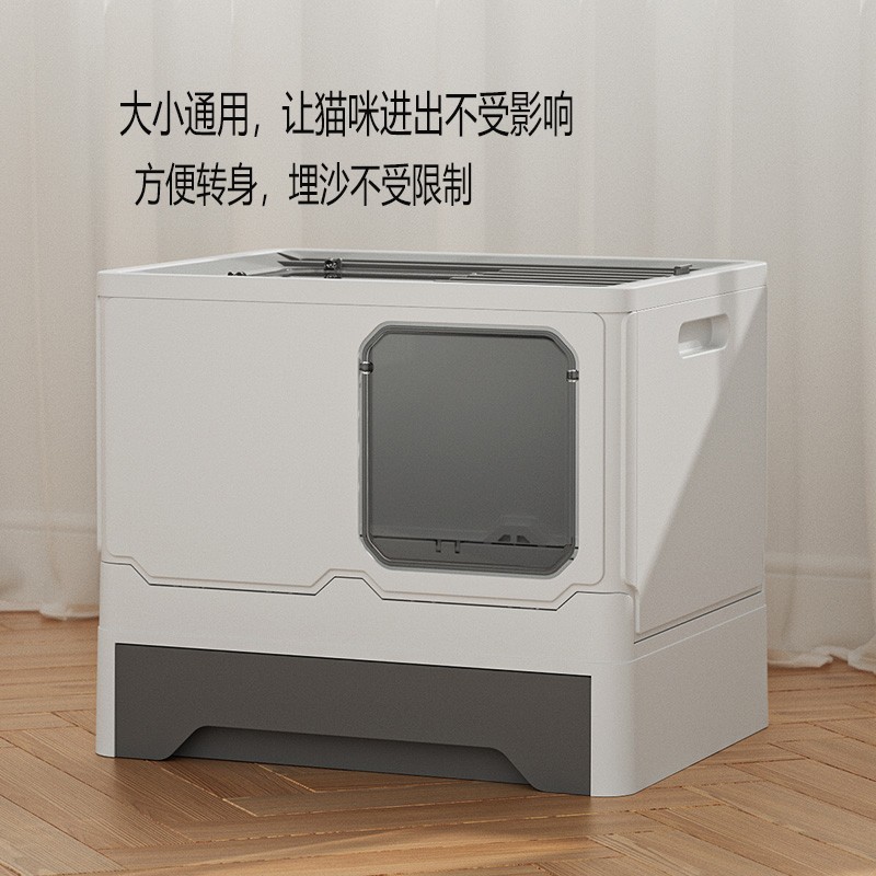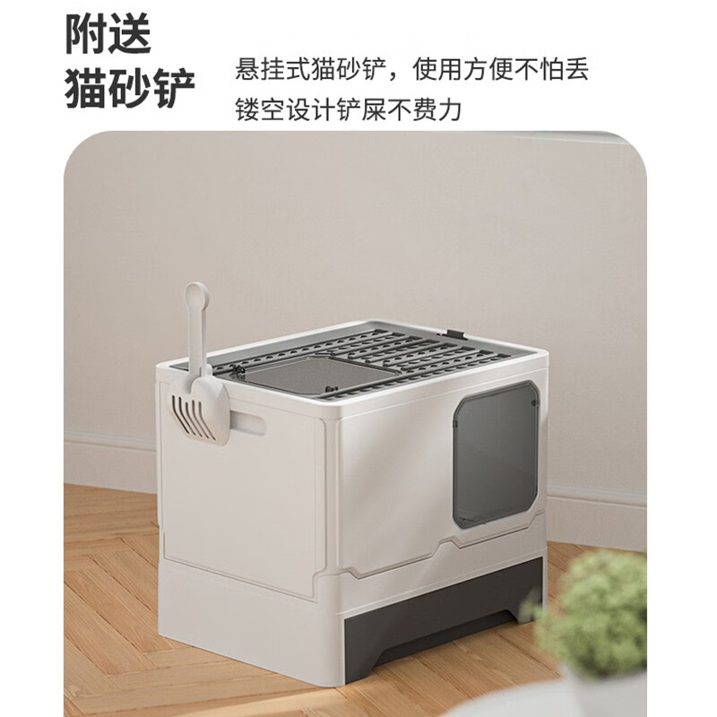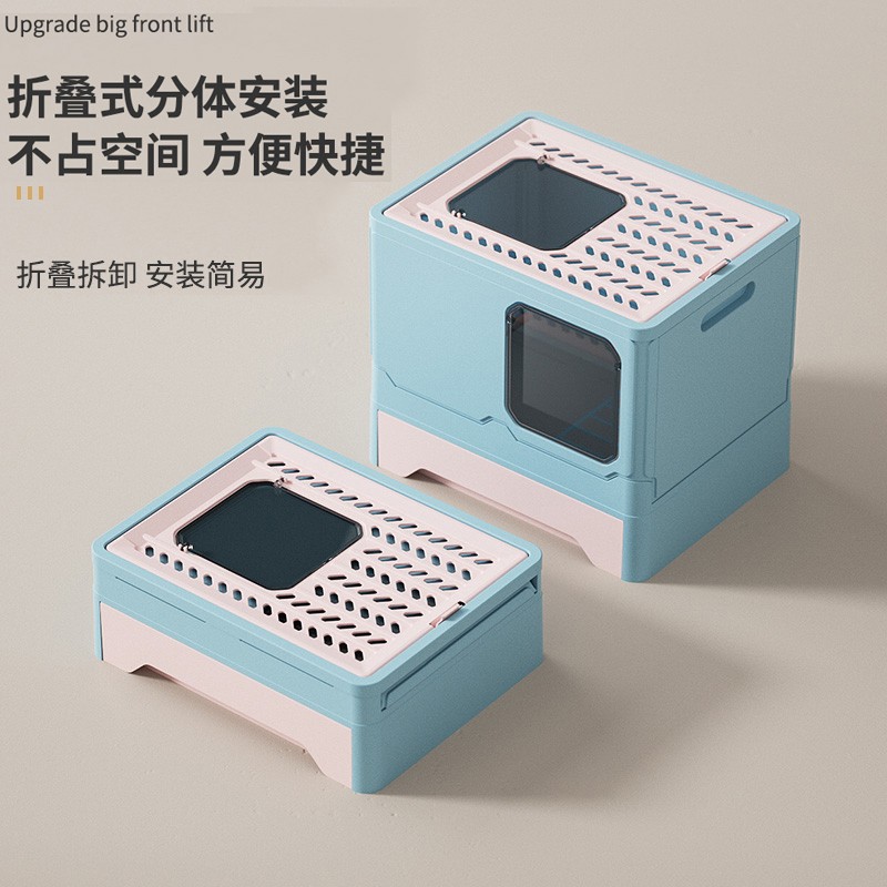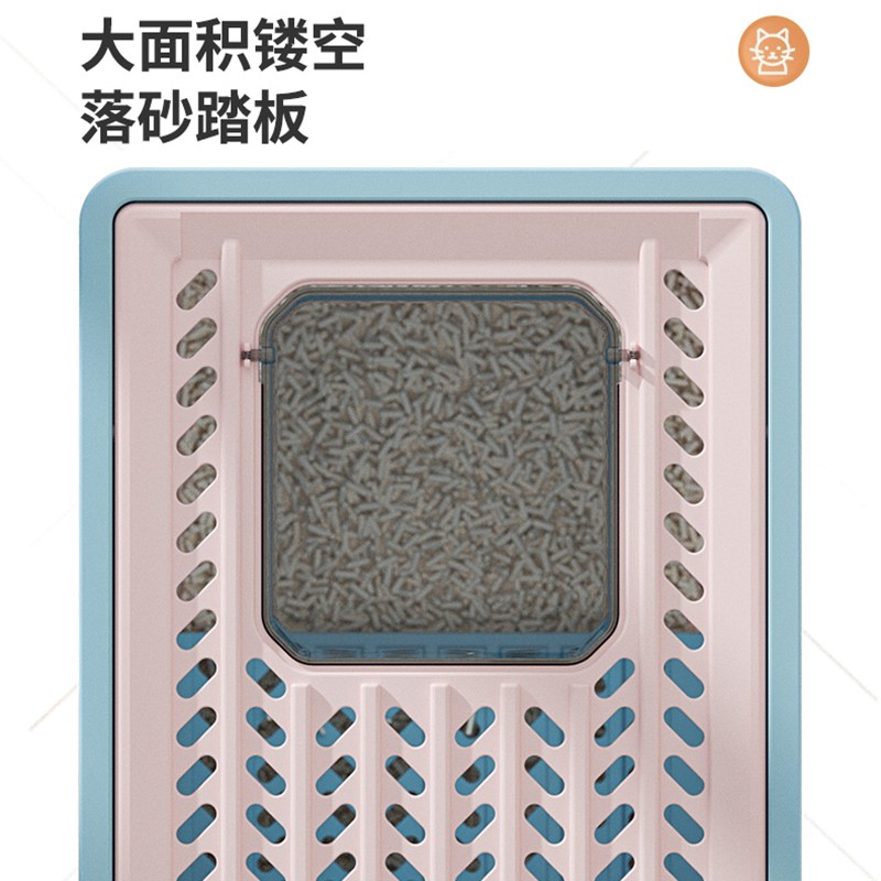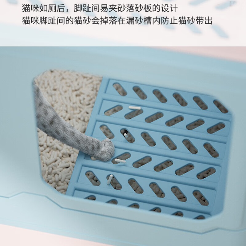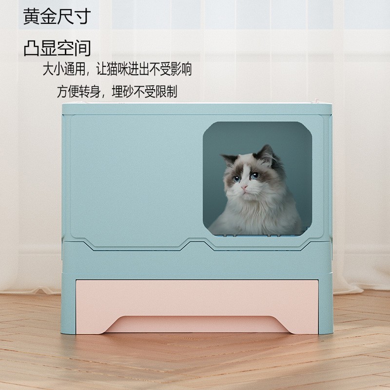 沄筱宠物 可折叠猫砂盆大号封闭式猫厕所抽屉式猫沙盆猫食盆顶入式防外溅超大号猫沙盆配猫砂铲猫咪用品 粉蓝色38*45*35