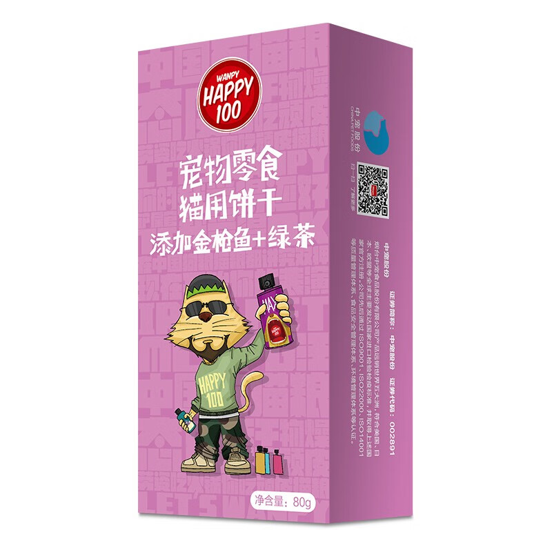 顽皮(Wanpy)猫饼干猫零食小鱼干饼干猫薄荷成猫幼猫零食多重口味80g/盒 金枪鱼 绿茶80g/盒